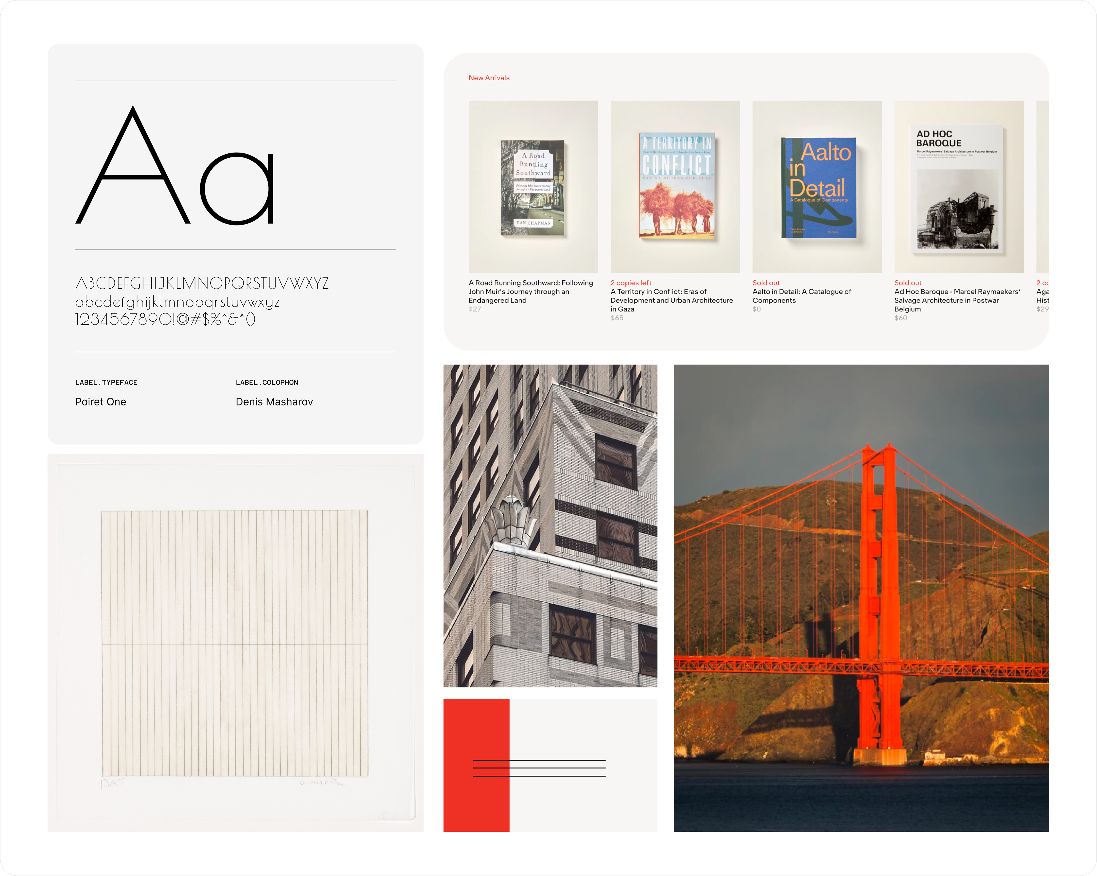 Inspiration gathering ran alongside sketching. The primary visual reference was Stout Books — its clean grid, confident type scale, and restrained palette. I also drew from editorial design and minimal commerce sites that prioritized typography and whitespace over decoration.